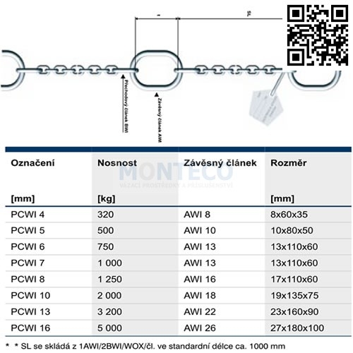 Popis Čerpadlový řetěz PCWI 8 1250kg