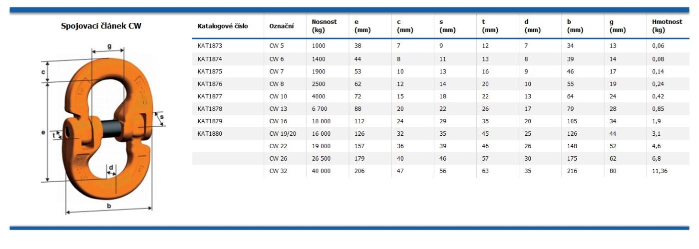 Zavěšovací článek - řetěz; Řetěz - řetěz; Hák - řetěz