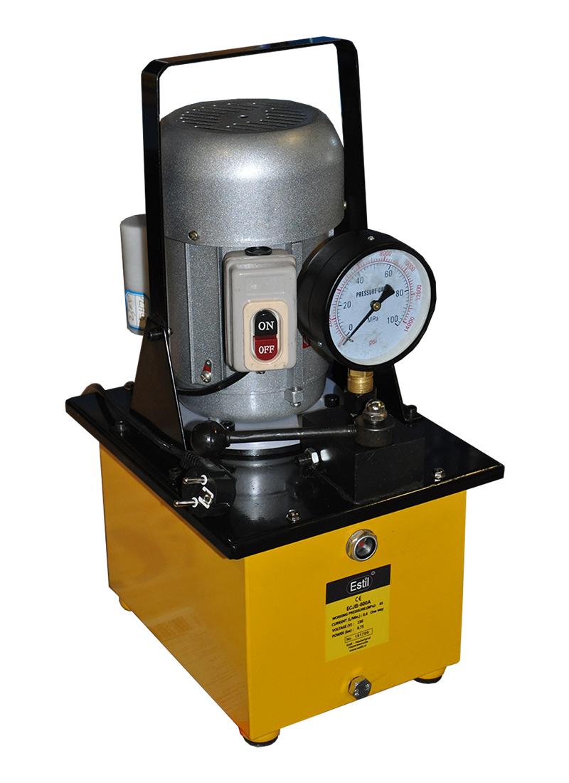 Elektrické hydraulické čerpadlo pro dvoučinné válce. Jednoduché ovládání pomocí páky. Ochrana proti přetížení.