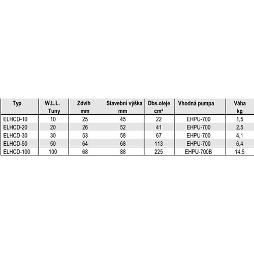 Popis Hydraulický válec ELHCD-10