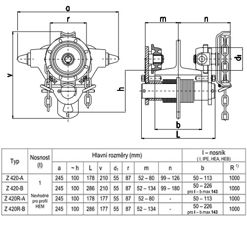nosnost 1000 kg, rozsah příruby nosníku 50-113 mm