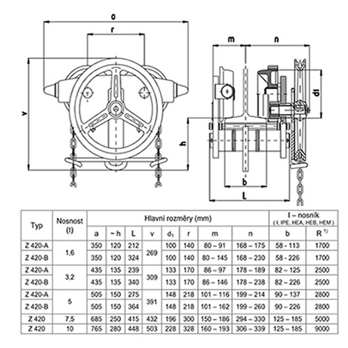 Jednonosníková kočka s ručním pohonem Z420-B/3,2 t