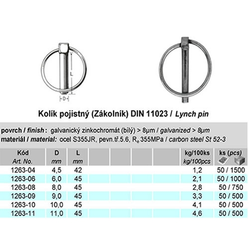 Popis Kolík pojistný (Zákolník) DIN11023 6 x 45 mm