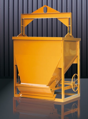 Obdélníkový koš s boční skluzavkou a ovládacím kolem výpusti pro těžké a náročné provozy. Vhodný pro vylévání forem v betonárnách.