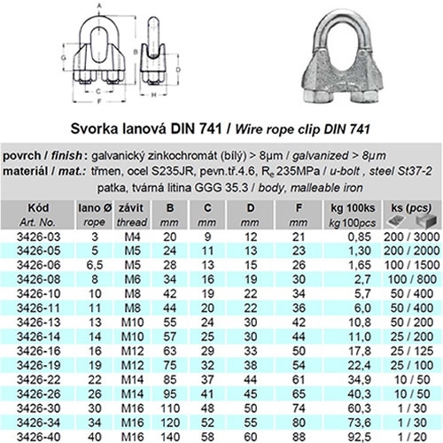 Popis Lanová svorka DIN 741 pr. 16 mm