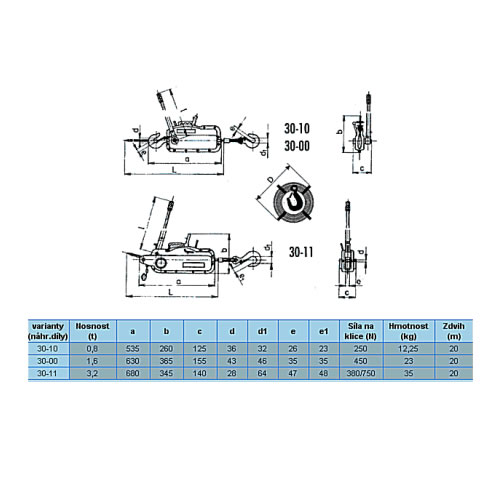 Popis Lanový zvedák BRANO 30-00 1,6t