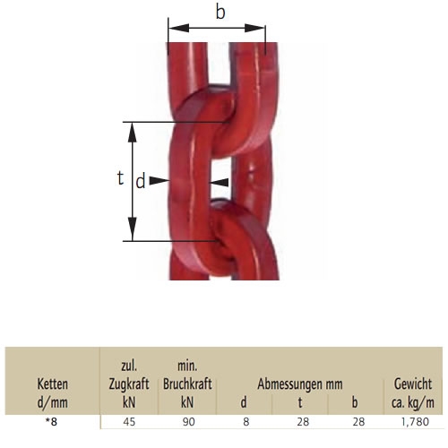 Popis Lesnický čtvercový řetěz pr.8mm oko+štěrbinový hák + zkrac. L=2m