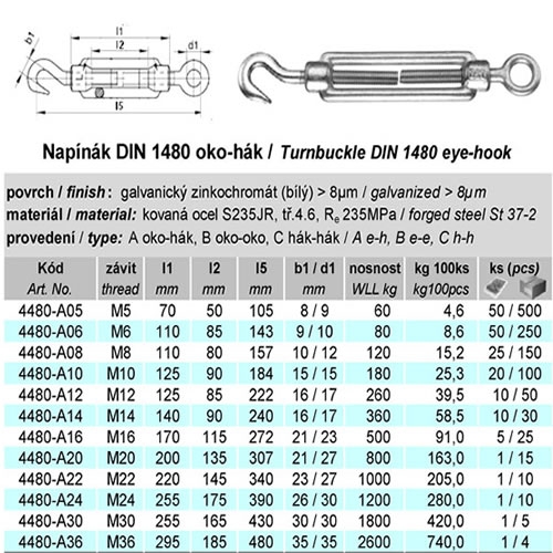 - Kategorie: Dle DIN 1480 oko - hák