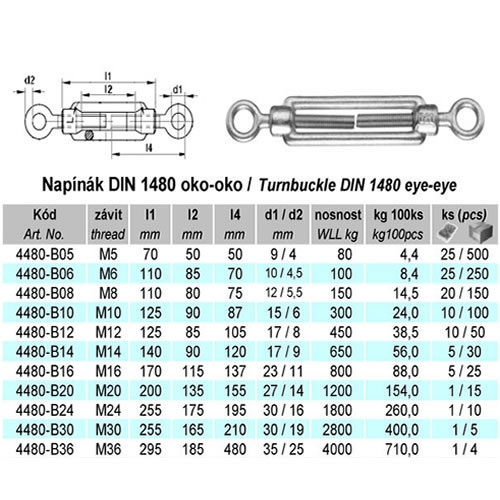 Popis Napínací matice DIN 1480 oko-oko M6, Zn