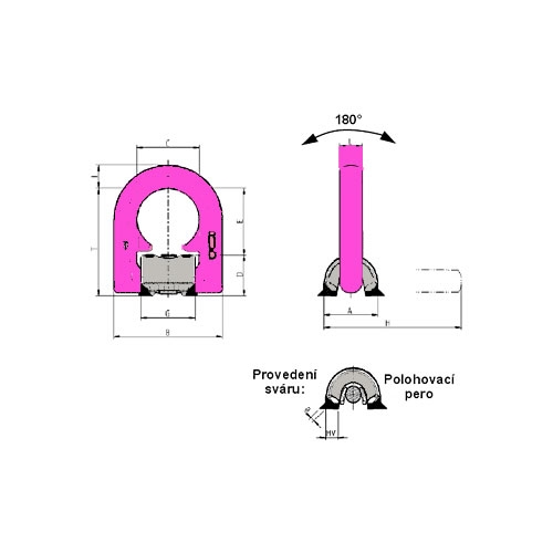 Jsou sklopné o 180° a zatížitelné ve všech směrech bez ztráty nosnosti. Povrch závěsného kruhu je opatřen efektní růžovou práškovou barvou. Kozlík vázacího bodu je z kované oceli 1,0577 + N ( St 52 -3N ), jedná se o odolný materiál, který se dobře svařuje. Nosnost je na kozlíku výrazně vyznačena. Vázací body jsou před expedicí 100% kontrolovány dle EN 1677-1, zda neobsahují trhliny. Mají koeficient bezpečnosti 4.