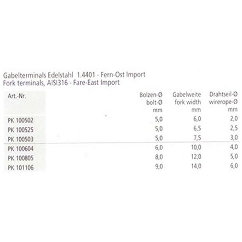Popis Nerez lanová koncovka lisovací s vidlicí 6 mm, A4