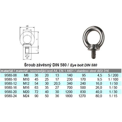 - Kategorie: Vnější závit dle DIN580 nerez A4