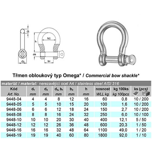 Třmen omega. Vyrobený z nerezavějící oceli A4 (AISI316).