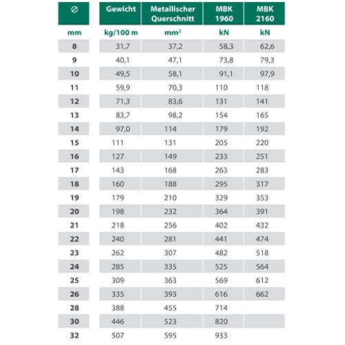 nekroutivé lano, pevnost drátů 1960 N/mm2. Max. trhací síla 179 kN