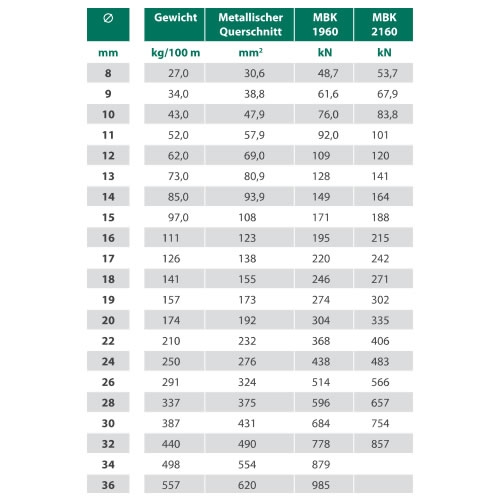 Rozměrová řada pr. 8mm - 36mm