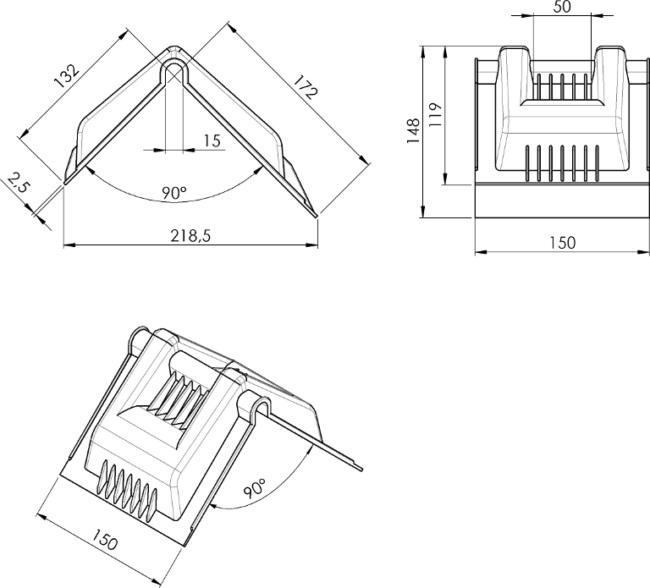 Plastový ochranný roh pro popruhy maximální šíře 65 mm. Rozměry: 160 x185 x150 mm.- Kategorie: Ochranné plastové rohy