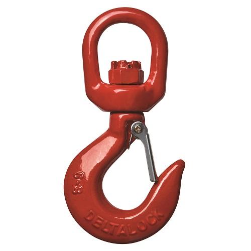 Otočný hák s plechovou bezpečnostní pojistkou, pevnostní třída 8. Není vhodný pro otáčení pod zátěží.