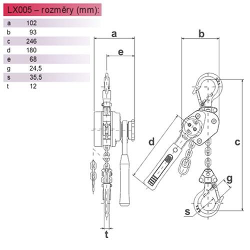 - volný posun řetězu nebo změna směru pohybu břemene přesunutím ovladače na páce