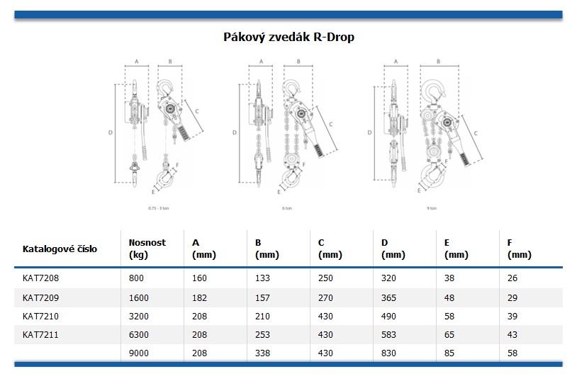 Popis Pákový zvedák R-DROP 1600 kg