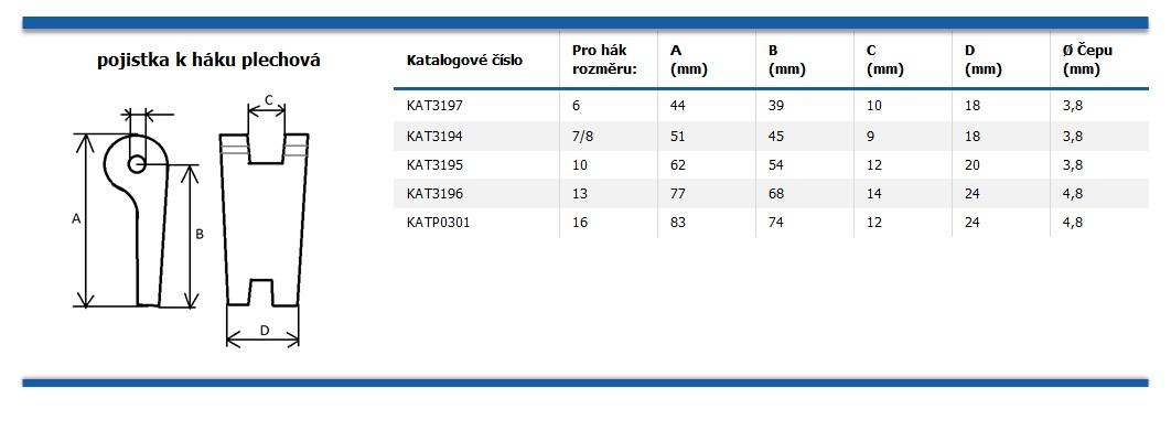 Popis pojistka k háku plechová vel.6mm - 1120 kg