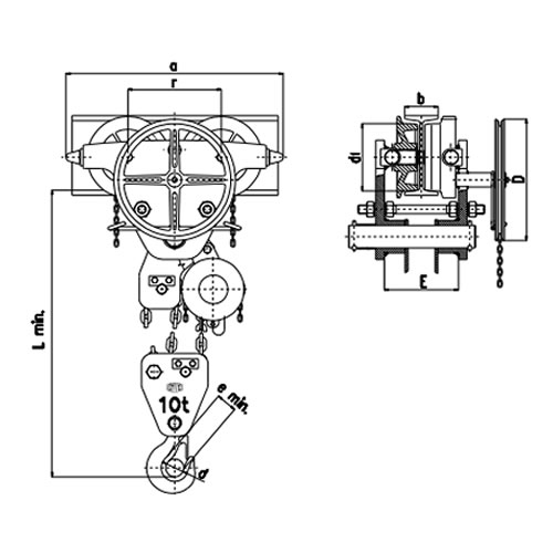 nosnost 7500 kg, 3 m řetězu, rozsah příruby nosníku 125-185 mm