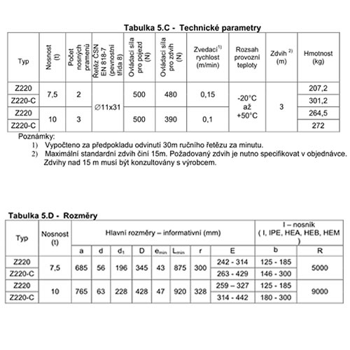 Popis Pojízdný kladkostroj Z220/7,5 t
