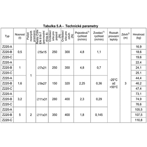 Popis Pojízdný kladkostroj Z220-B/1 t
