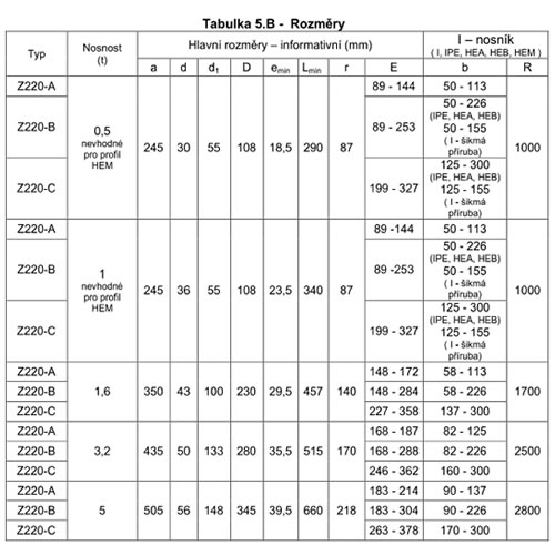 Novinka: přidání typu Z220-C - rozšíření použití pro větší rozsah šířky příruby nosníku