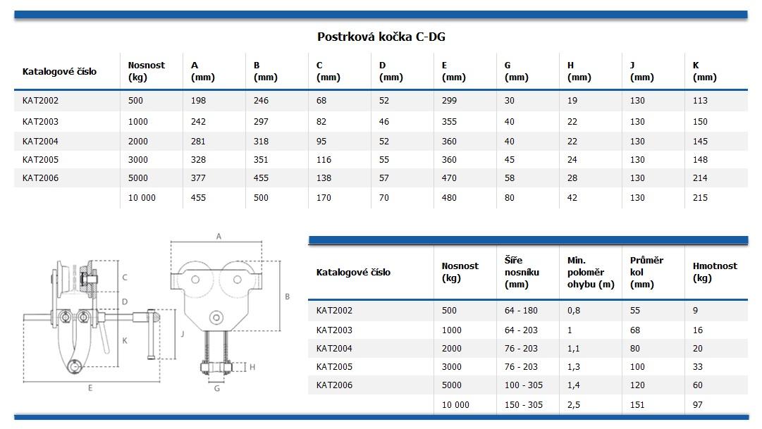 Popis Postrková kočka C-DG 500 kg
