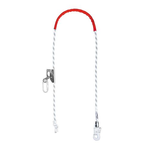 Pracovní polohovací zařízení PROT 11 se seřizovačem doplněným o karabinu AZ 011 a ochranným návlekem. Provedení lana: volný konec - karabina AZ 002.
