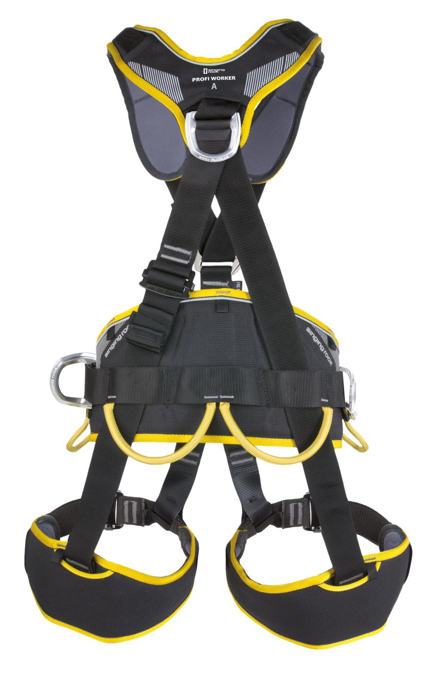 Plně nastavitelný postroj s průběžnými nastavovacími popruhy pro lanový přístup s širokým polstrovaným bederním pásem, nohavičkami a ramenními popruhy. Rovněž se hodí pro polohování pracovníka, zachycení pádu a záchranu. Varianta postroje PROFI WORKER 3D se SPEED sponami.