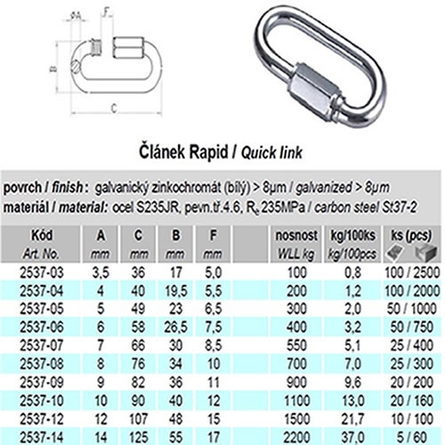 Popis Rapid článek 9 mm, Zn