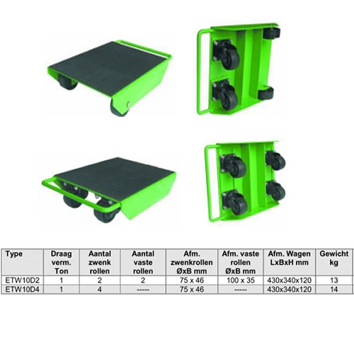Popis Transportní vozík s otočnými válečky ETW 10 D4