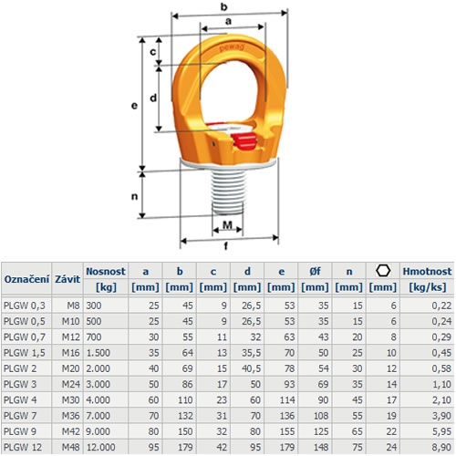 Popis vázací bod PLGW profilift gamma M20/2t