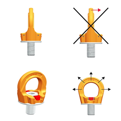 Je otočný v rozsahu 360°, obsahuje patentovaný a speciální vyměnitelný šroub z materiálu třídy 10.9, který je 100% defektoskopicky testován má dobrou chromátovou protikorozivní úpravu a vyznačenou nosnost s velikostí závitu. Každý vázací bod je opatřen seriovým číslem umožnujícím dohledatelnost. pewag profilift gamma je také dostupný v provedení s UNC-závitem.