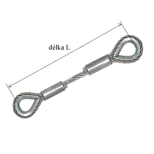 Provedení ocelového vázacího lana s ochranou očnicí na obou koncích pro montáž kotevních prvků jako je třmen, šroub atd. Očnice chrání ocelové lano před poškozením.