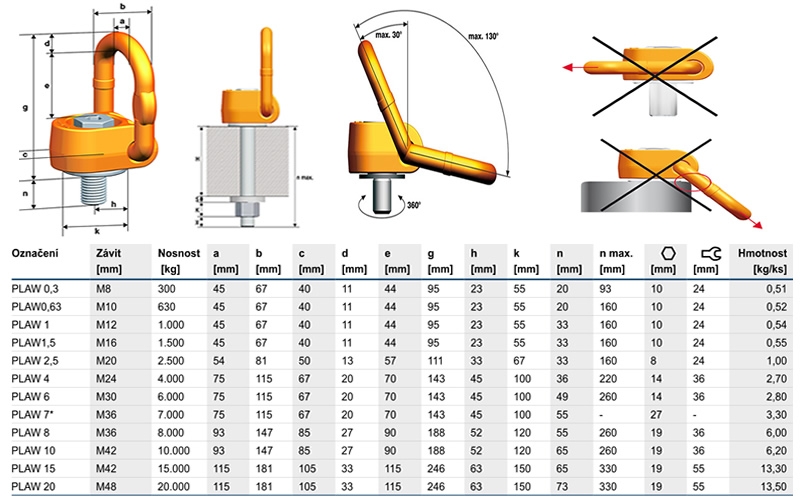 Popis Vázací otočný bod PLAW 0,63 t/M10
