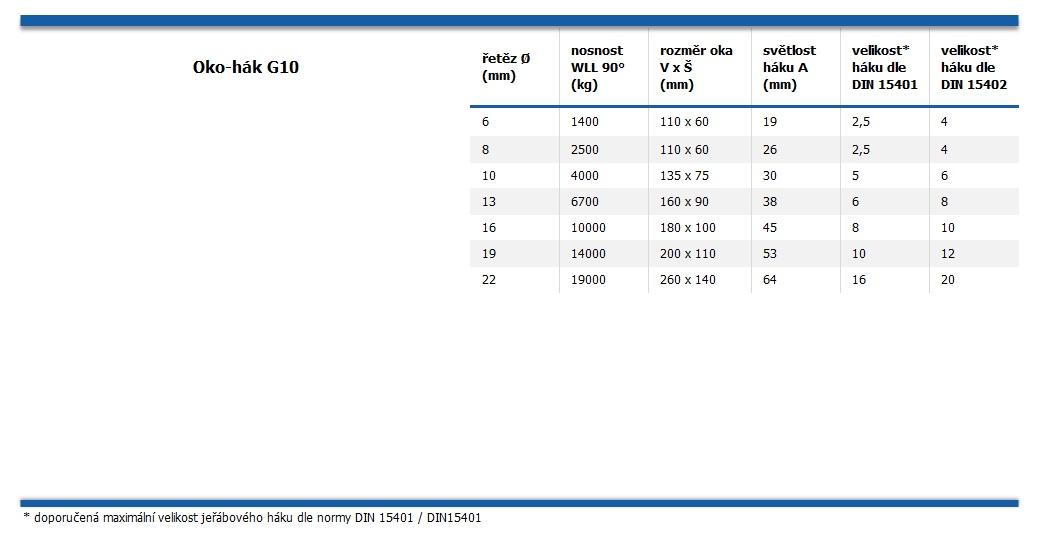 Vázací řetězy pevnostní třídy G10 se vyznačují primárně navýšením nosnosti o 25 % oproti pevnostní třídě G8 (přibližně o 30% lehčí řetěz se shodnou nosností). Díky použití vysokopevnostní oceli jsou obzvláště vhodné do těžkého průmyslu, vystavované ostrým hranám a vysokému opotřebení otěrem.