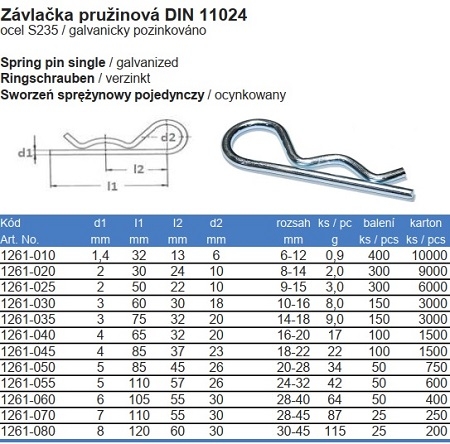 Závlačka pružinová DIN 11024 6 x 105 mm