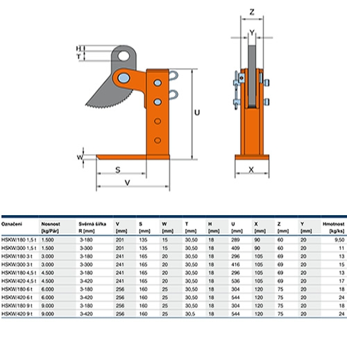Popis Zvedací svěrka HSKW 180/9t/3-180mm