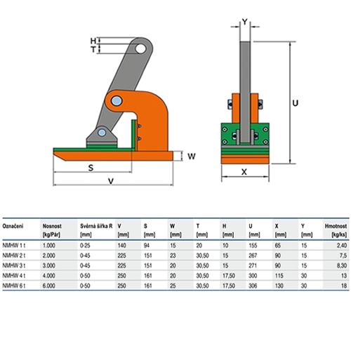 Zvedací svěrka NMHW 6t/0-50mm