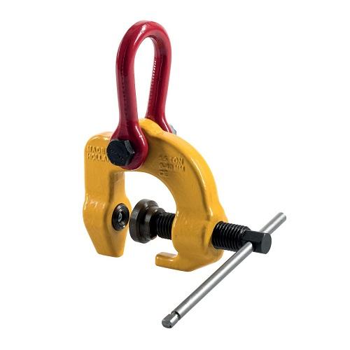 Univerzální šroubovací svěrka pro vertikální a horizontální přepravu a montáž velkých ocelových konstrukčních částí. Svěrka je vybavena otočným ozubeným segmentem na závitovém vřeteni a stacionárním ozubeným okružím na těle svěrky.