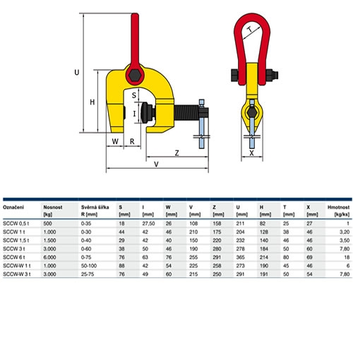 Popis Zvedací svěrka SCCW 1t/ 0-30 mm