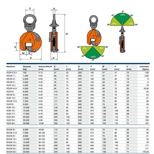 Popis Zvedací svěrka VEUW 7,5t/ 0-55 mm