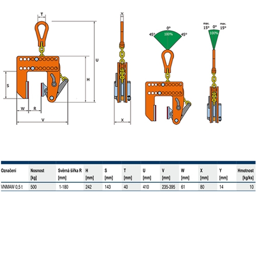 Zvedací svěrka VNMAW 0,5t/ 1-180mm