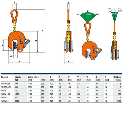 Popis Zvedací svěrka VSNMW 0,5t/ 17-37mm